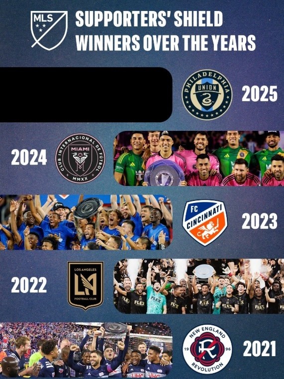 美职联列历年常规赛冠军:费城联合第二次加冕,去年迈阿密国际