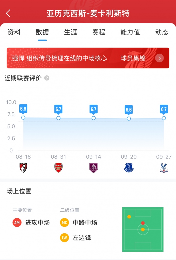利物浦1-0阿森纳,麦卡利斯特6.6分