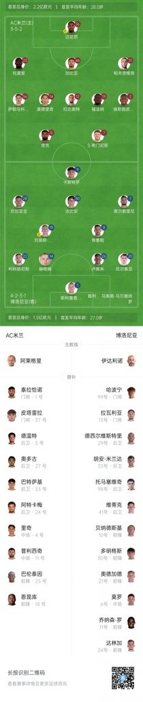 米兰vs博洛尼亚首发:拉比奥特首秀、恩昆库替补,莫德里奇先发